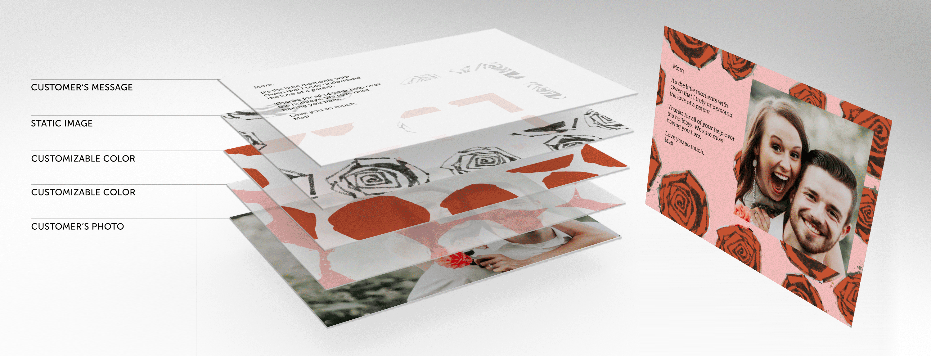 We built a new process for designing cards that allowed for customer customizable colors. Working with our engineers we came up with a solution that involved the whole team: card designers, backend and front end designers.