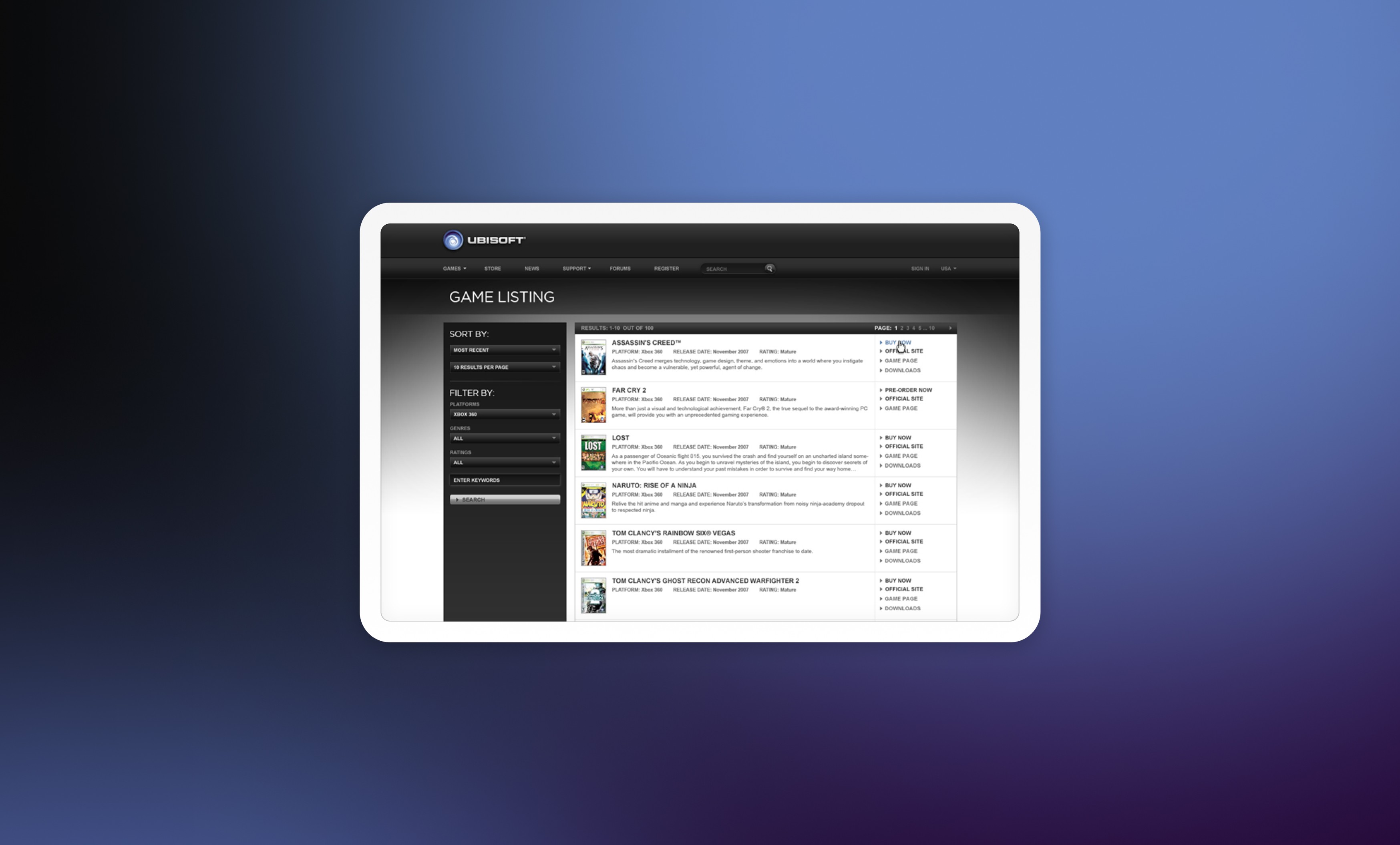 Worked closely with a creative director to redesign Ubisoft's gaming hub where consumers can find everything from first person shooters to virtual pets.