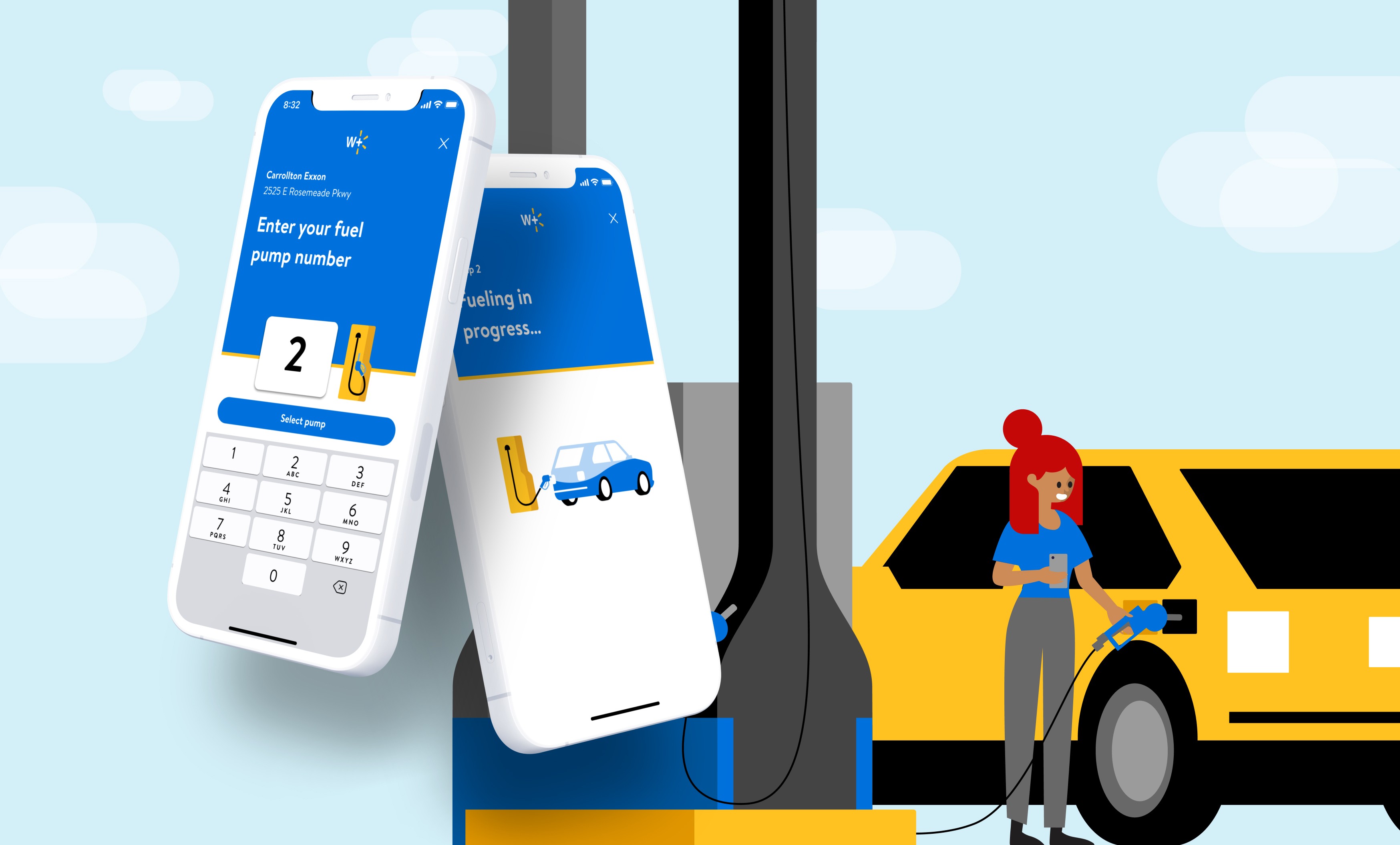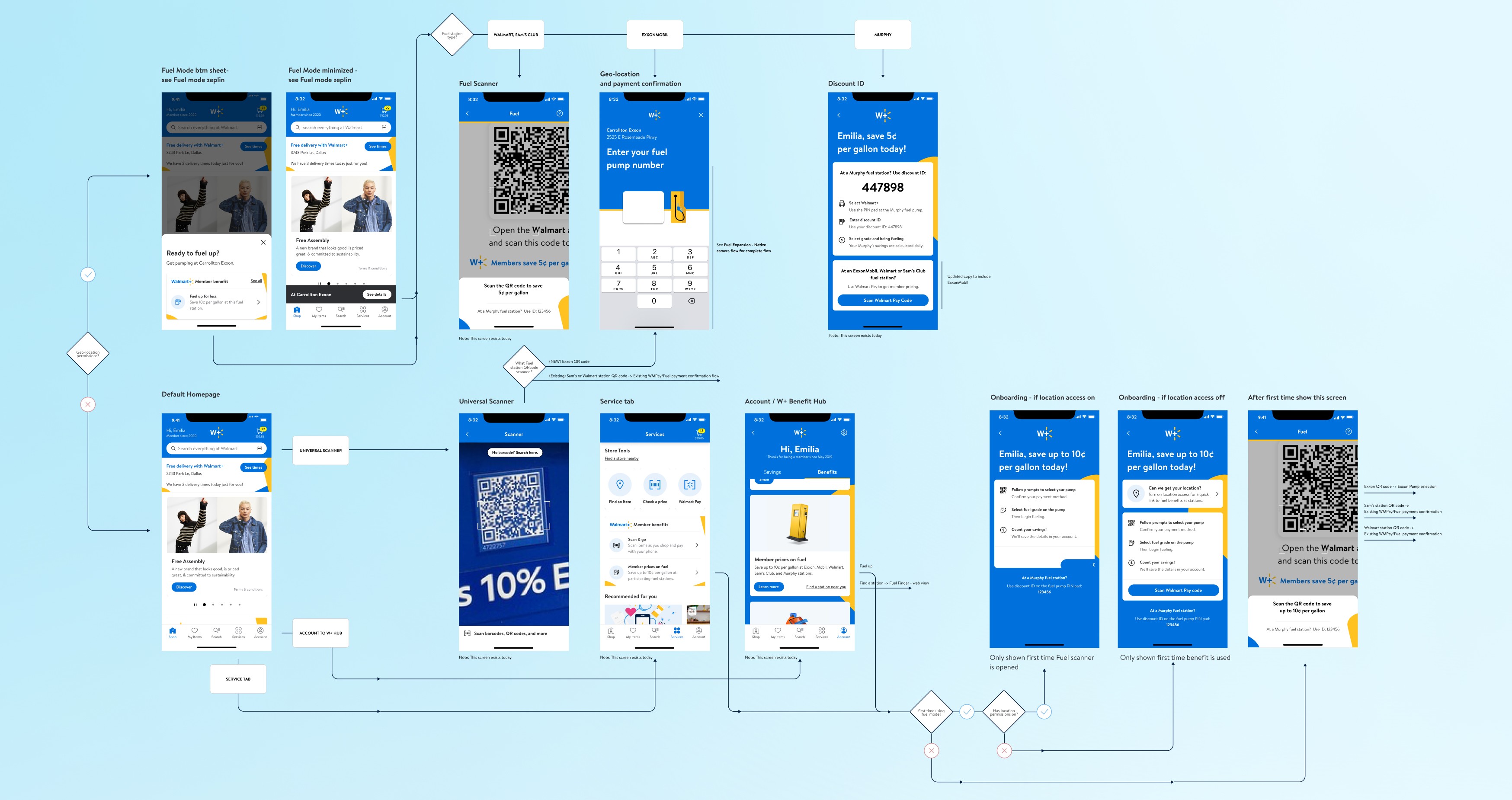 Add ExxonMobil as a new partner and keep the experience simple and easy. We initially proposed having a unique W+ QRcode on each fuel pump, to match the current Walmart+ fueling experience. This wasn’t feasible as it would give special priority to our discount on every pump. We compromised on using the existing QRcodes for Exxon Mobil Rewards program.
